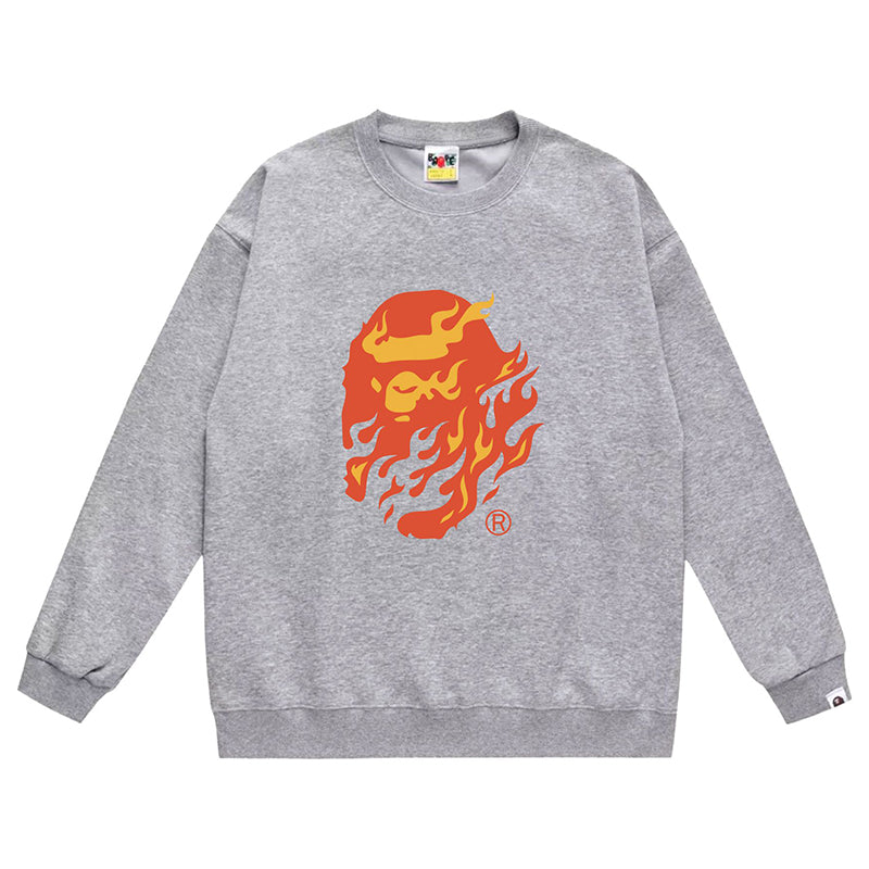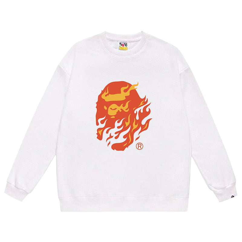 BAPE Ape Head Flame Print Crew Neck Sweatshirt