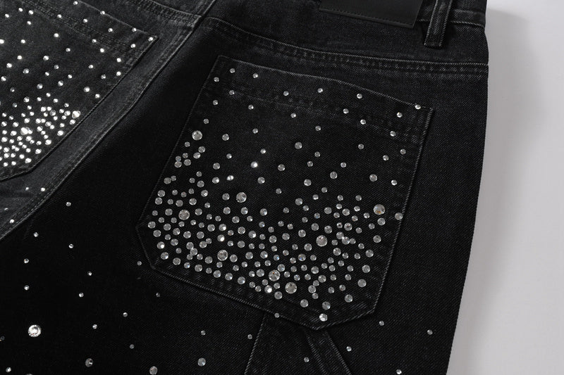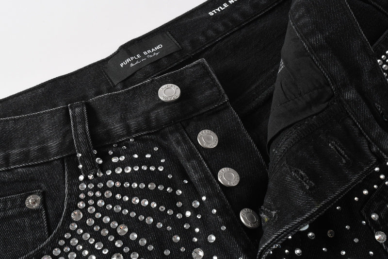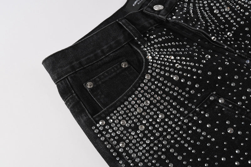 Purple Brand Crystal Diamond Denim Shorts #5099
