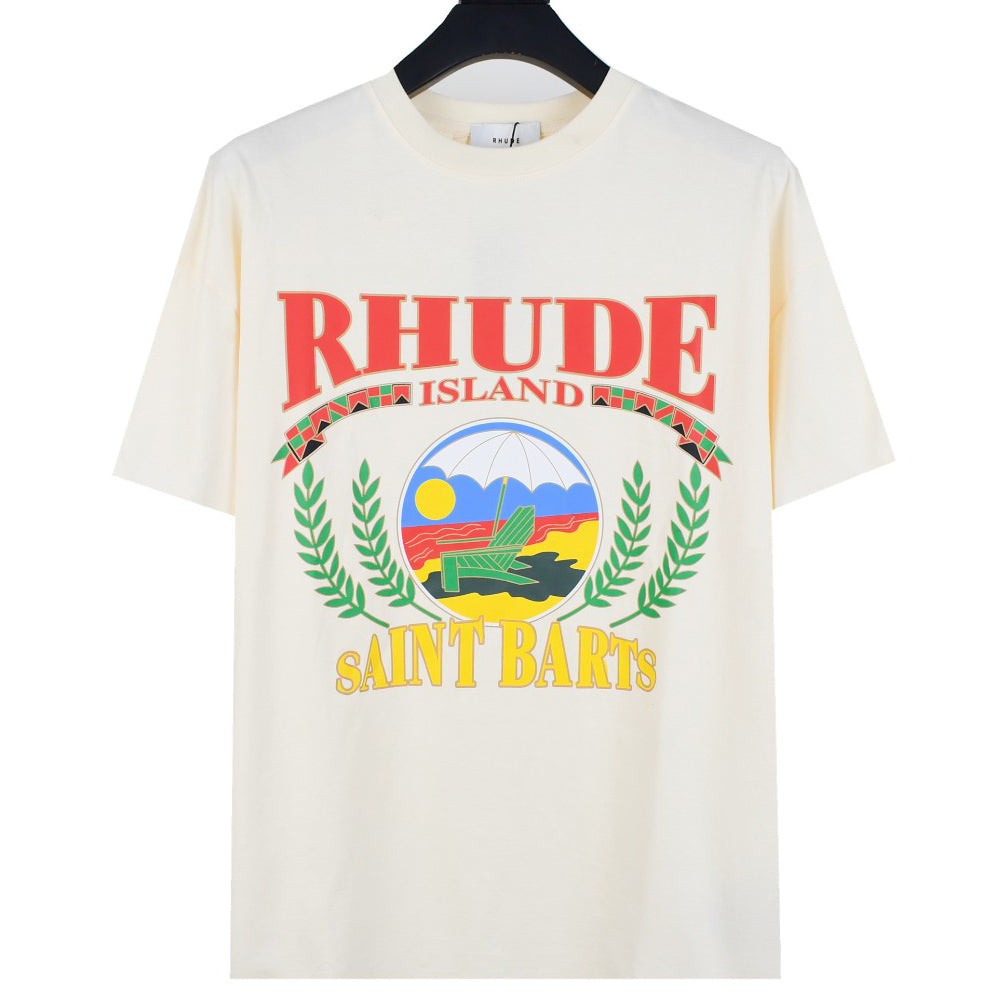 High Quality Rhude 23ss Paradis Tropical Beach Print Short Sleeve T-Shirt